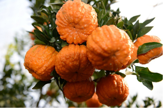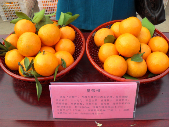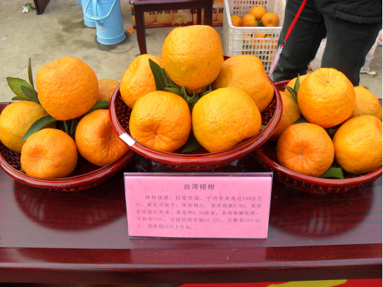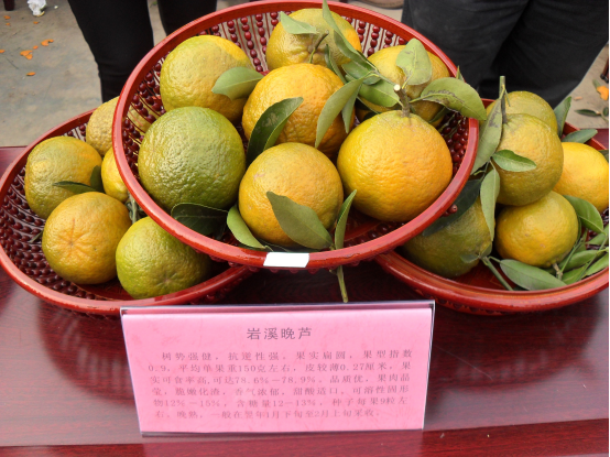 又称“贡柑”,乃橙与橘的自然杂交种。果形靓丽、果实扁平、大小均匀、果色金黄、皮薄核少、肉脆化渣、清甜香蜜、高糖低酸、风味浓郁,据检测,贡柑单果平均重120—150克,果径60—65mm,可溶性固形物达11—13%以上。可食率达76.7—79%以上,固酸比高达36.7~37.1:1,总酸量低至0.3—0.35%。成熟期12月上中旬。