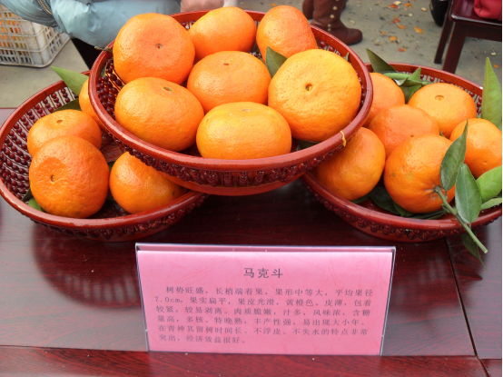 树势中庸,果实扁球形,单果重200-250克左右。果面黄橙色,较光滑。比蜜柑稍难剥皮。果肉橙色,囊壁薄,果肉柔软多汁。果皮、果肉具甜橙香气,风味较佳。果汁糖度11°-12°左右。成熟期为3月上中旬。主要特点为果大,丰产性很好,特晚熟。