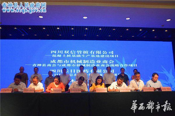 9月8日,64位来自成都、重庆等地机械类企业家齐聚眉山市青神县,集中考察洽谈投资项目。当天签约仪式上,各地企业家和青神县,共签订以机械产业项目为主的投资协议9个,协议投资45亿元。经过多年不懈努力,青神县已经建成了国内最大的小型制冷压缩机、标准传动件、木工机床生产基地和西部最大的日用化工生产基地,成为全国县域机械产业集群竞争力百强县之一,2016年全县规模以上机械企业实现主营业务收入33.6亿元。今年以来,该县抢抓国家“一带一路”、长江经济带、四川全面创新建设机遇,主动融入天府新区、成都平原经济区战略布局,积极投入眉山市“天府新区增长极、大都市区新高地”建设,分类分层定点定向开展招商引资,招大引强、招高引新、招商引智,优先做大做强机械支柱产业。签约当日,54名受邀机械类企业家、10名本地机械类企业家和市、县相关负责人进行了座谈。四川村田机械制造股份有限公司经理包勇在座谈会上表示,“机械产业是投资大、链条长、占地少、污染小、就业广的产业常青树。青神打造机械之都,有国内数一数二的雄厚产业基础,有‘成都区位,青神成本’的投资发展潜力,有机械产业集群发展的一流氛围,对投资青神我们满怀信心!”上海卡得城仕发动机有限公司董事长陈敏表示,随着天府新区建设的深入推进和川渝经济圈产业转移加速,青神这个西部小县将迎来更多机遇。“这次我们带着多缸柴油机整机生产项目而来,计划投资2亿元,打造高端装备制造业生产基地。”据了解,经过前期接触和这次为期两天的集中考察洽谈,企业家们与青神县政府正式签署首批9个投资项目协议,投资领域涉及高效节能饲料膨化机、多缸柴油机整机、医药总部及仓储物流、机械加工零部件、大型游乐设备、高端机械制造等高端设备制造项目,协议投资金额45亿元。签约项目将陆续入驻青神县工业开发区开工建设。(原载于《华西都市报客户端》2017年9月8日 记者 宋美志 李庆 )