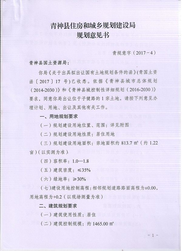 容积率:1-1.8;规划建筑密度:≤35%;绿地率:≥30%;建筑控制规模:1465㎡;建筑控制高度:≤24米。