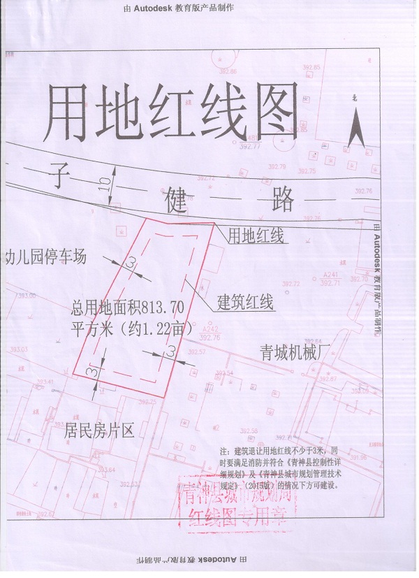 (三)规划建设用地面积:813.7㎡(约1.22亩)。