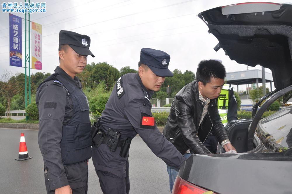 强化重点地段设卡盘查——青竹治安卡点,特巡警、交警、武警联合执勤民警们正在认真地开展过往车辆和人员盘查,扎牢县城外围屏障。