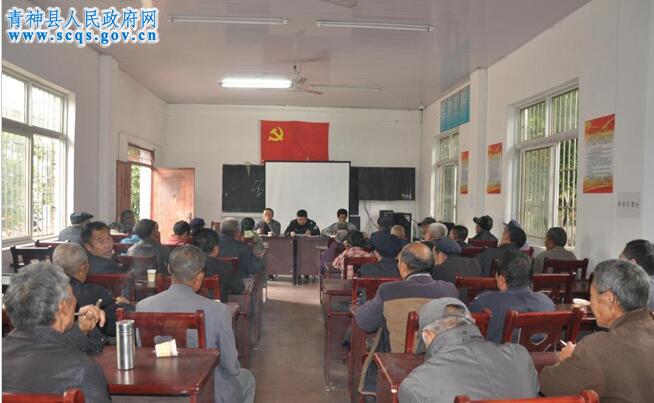 11月9日,青神县公安局政委胡朝福深入联系点河坝子镇杨店村宣讲党的十九大精神,村两委成员和全村党员参加了宣讲会议。
