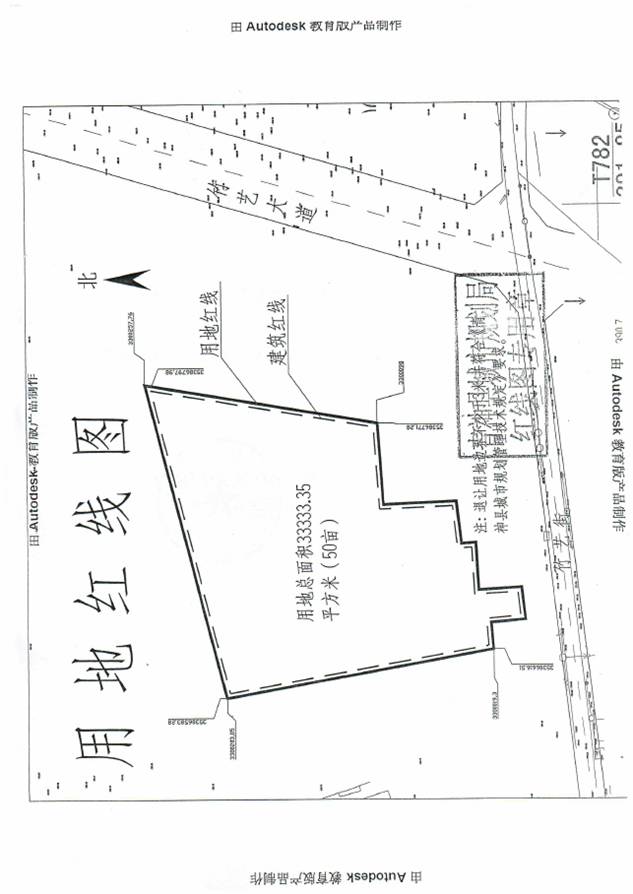(三)规划建设用地面积:33333.35㎡(约50亩)。